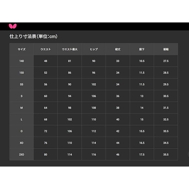 サイズ展開:140、150、SS、S、M、L、O、XO、2XO