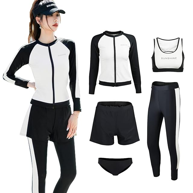 [Adigaber] 水着 レディース 体型カバー フィットネス水着 長袖ラッシュガード セパレート 5点セット レギンス サーフィンパンツ タンキニ UVカット 速乾 水陸両用 女性用
