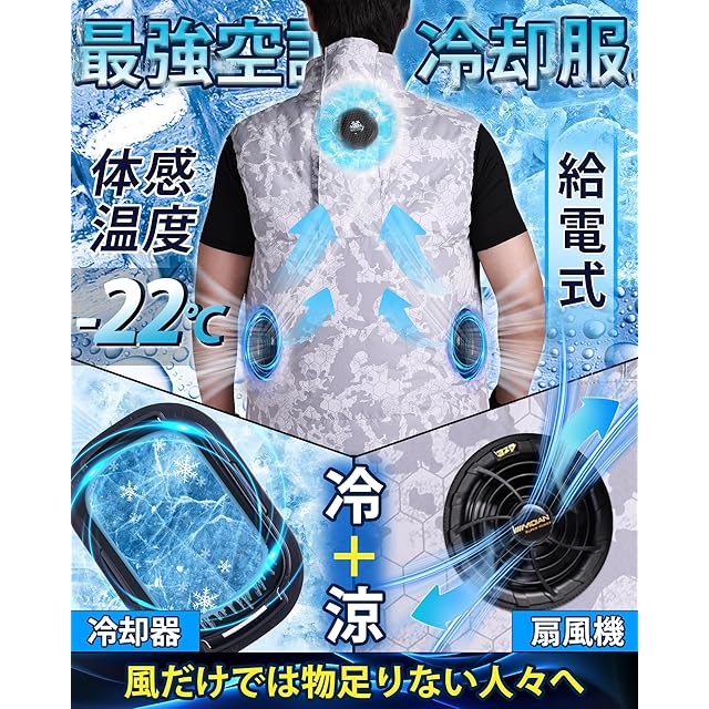 [MIDIAN] ペルチェ冷却服【2025業界独創 1つ冷却器と扇風機付き 32V超高出力 20000mAh大容量バッテリー】ペルチェ素子冷却技術 最大-22℃冷やす バッテリーセット 冷感服 瞬間冷却 現場 外仕事 猛暑対策 男女兼用 (JP, アルファベット, S, ホワイトカモフラージュ)