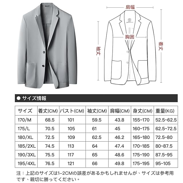 [MYMRIN] ジャケット メンズ 夏 春季 冷感 極薄 通気 サマージャケット メンズ 耐シワ性 涼しい カジュアル ビジネス ブレザー 大きいサイズ 紳士(ライトグレー,XL)