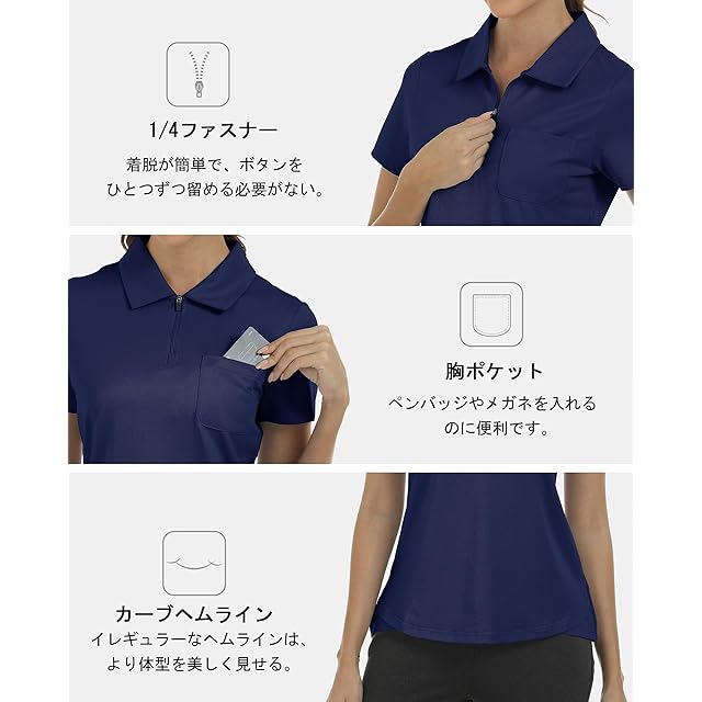 [YIRUIYA] ゴルフウェア レディース 夏 ハーフジップ ポロシャツ 半袖 トレーニングウェア シャツ ゴルフシャツ テニス レディース スポーツ 吸汗速乾 通気 日焼け止め 介護 ユニフォーム オフィス 仕事 おしゃれ
