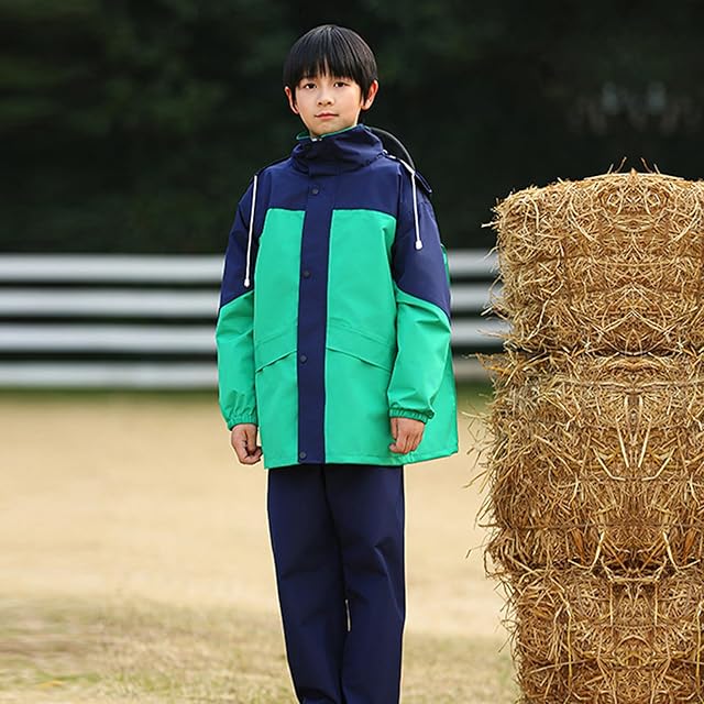 [Formemory] レインコート キッズ 上下セット ポンチョ レインスーツ 子供 女の子 男の子 カッパ子供 ゴム付きの袖 ランドセル対応 透明窓付き 防風 防水ハイネック 通学 子供用 雨具 遠足 梅雨対策 携帯ポーチ付き 雨具 3色 (グリーン, XL)