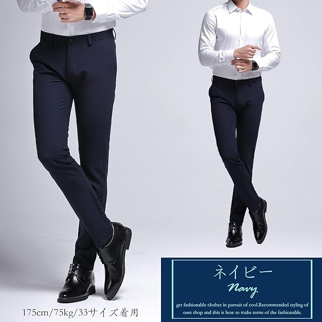 Gmardar ノータック スラックス メンズ ウォッシャブル スリム ストレッチ ビジネス フォーマル 薄手 夏 通勤 美脚 定番 仕事着 イージーケア パンツ ロングパンツ (29, ネイビー)