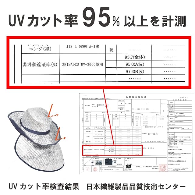 ツバ幅10cm、後ろケープ19cm、ケープは取り外し可能、UVカット率99~95%以上