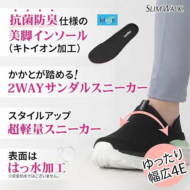 [スリムウォーク] かかとが踏める2Wayサンダルスニーカー 幅広4E 美脚インソール搭載 撥水加工 軽量 抗菌防臭 (グレーブルー, 日本の靴のサイズ寸法, 大人, 数値, 4_e, 24.0 cm)