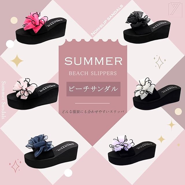 【デザイン】リボンのデザインが甘くて可愛い。7cmのウェッジソールは、身長を伸ばすことができる。厚底設計にもかかわらず、靴全体が超軽量なので、長時間歩いても足が疲れる心配がありません。厚底ソールで美脚脚長効果を実現、履きやすく歩きやすい万能サンダルです。どんな服装にも合わせやすいスリッパ。