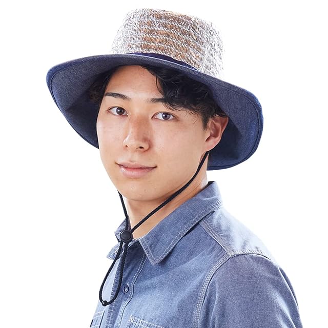 ワイヤー入りのツバで角度調節自由自在,あご紐付きで風が強くても安心