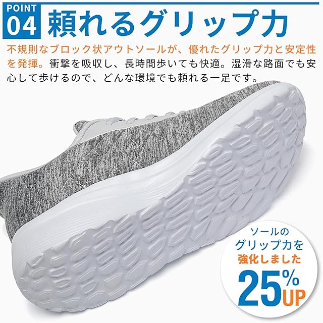 【立ったまま簡単に履けるデザイン】忙しい朝でも、靴べらなしで立ったままで簡単に履けるデザイン。靴紐やバンドの調整も不要で、準備時間を大幅に短縮できます。家事や育児に忙しい方や、通勤を急ぐビジネスマンに最適。朝の時間を有効に使える、便利でスムーズな履き心地を提供します。お客様には、普段お履きのス二一カ一より0.5センチ大きいサイズのご購入をお勧めいたします。