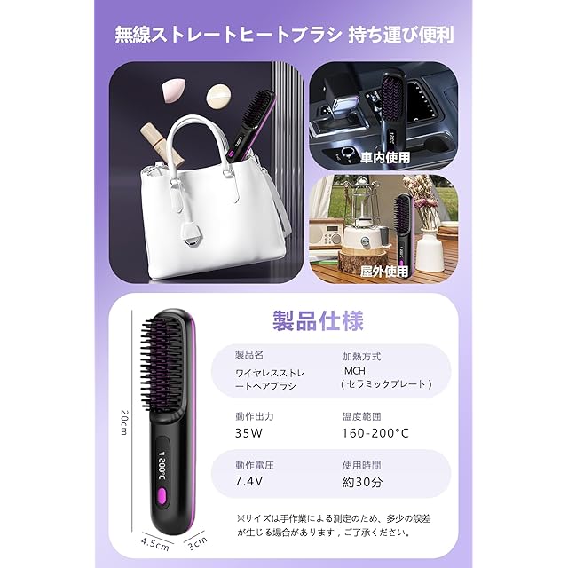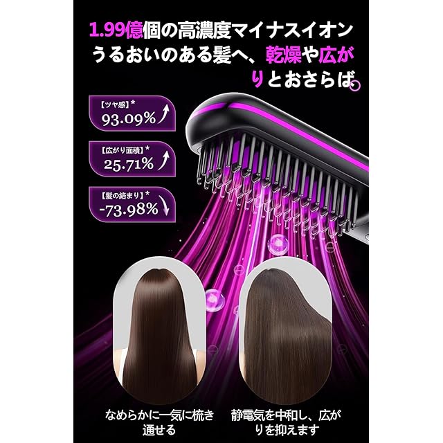 商品名:ヒートブラシ 忙しい朝もとかすだけでまとまる ストレートブラシ 高速加熱&断熱設計 Type-C充電式 携帯に便利な電気ブラシ 女性用