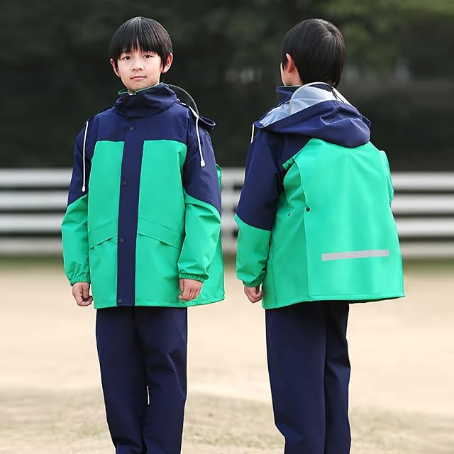 【安全な【ランドセル対応】背部のランドセルを入れるスペースがあり、リュックやランドセルを背負ったまま、レインコートが着れます。普段使いはボタンで折りたたむことができるので、ランドセルやリュックを背負う場合はスナップボタンを外してとめておけばゆったりと着られます。デザイン】レインコートは反射テープが付き、薄暗い雨の日でも、車のライトに反射して光るので安心。日中や暗い所で雨天に歩行、自転車、夜間運動をする際により安全になっています。また、透明で大きなバイザーは、顔や目を雨から効果的に遮ることができます。