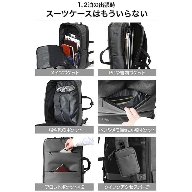 [Evoon] マルチビジネスリュック4.0 メンズ ビジネスリュック 35L 大容量 旅行バック 拡張機能 撥水加工 USB 15.6インチ (モスグレー)