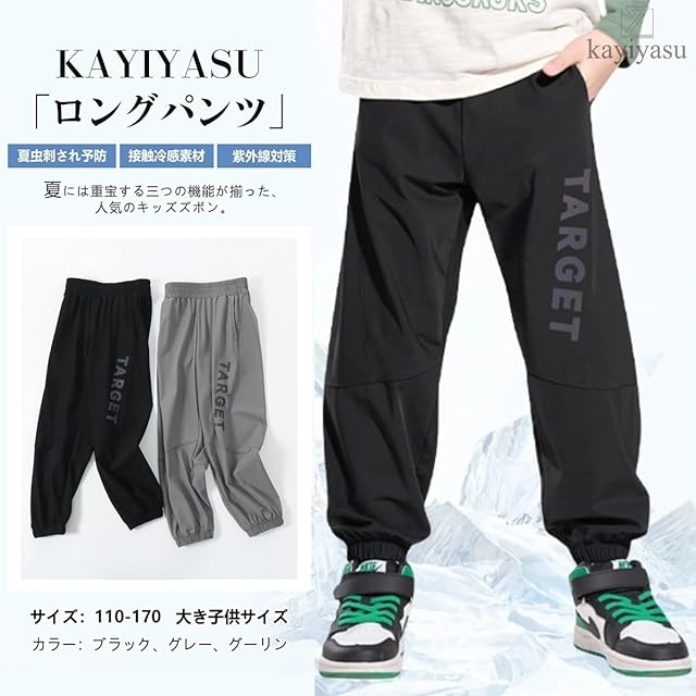 ★「デザイン」反射素材の英字飾りがカコイイ。すっきりとしたラインが高級感満々。裾に向かってしぼんだデザインがポイント◎男の子用ズボンが探しなら、この機能性とデザインを兼ね備える1本をおすすめします。・カラー:ブラック、グレー、グーリン ・サイズ:110、120、130、140、150、160、170 大き子供サイズが用意しており、キッズもジュニアもご利用いただけるロングパンツです。