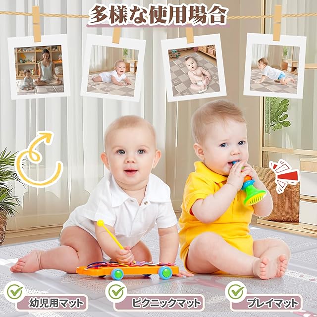「高品質なXPE素材」:こちらのプレイマットは高品質なXPE素材を採用しており、有害な化学物質を含まない無害・無臭の素材で、柔らかくて弾力性があり、安心してプレイタイムを楽しむことができます。お子供様が歩き始めたり、遊んだりお昼寝したりに最適。ママもヨガや産後エクササイズをすることもおすすめです。