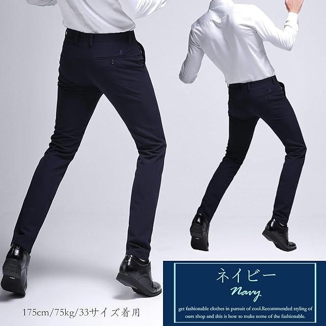 Gmardar ノータック スラックス メンズ ウォッシャブル スリム ストレッチ ビジネス フォーマル 薄手 夏 通勤 美脚 定番 仕事着 イージーケア パンツ ロングパンツ (32, ネイビー)