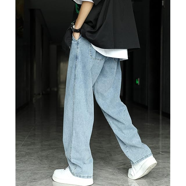 [eternal cycle] エターナル サイクル ワイドデニム デニムパンツ ジーンズ メンズ デニム パンツ ゆったり ルーズシルエット ワイド ジーパン バギー バギーパンツ カジュアル EC-004 (S, サックス)