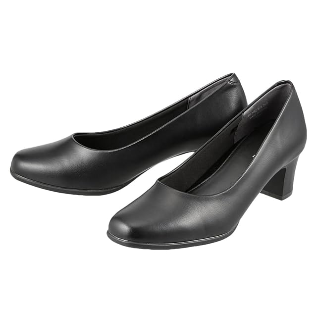 [フワラク] ゆったり幅広 4E 防水 スクエアトゥパンプス <5.0cmヒール> 【21.5cm~25.5cm】 レディース ブラック 24.0 cm