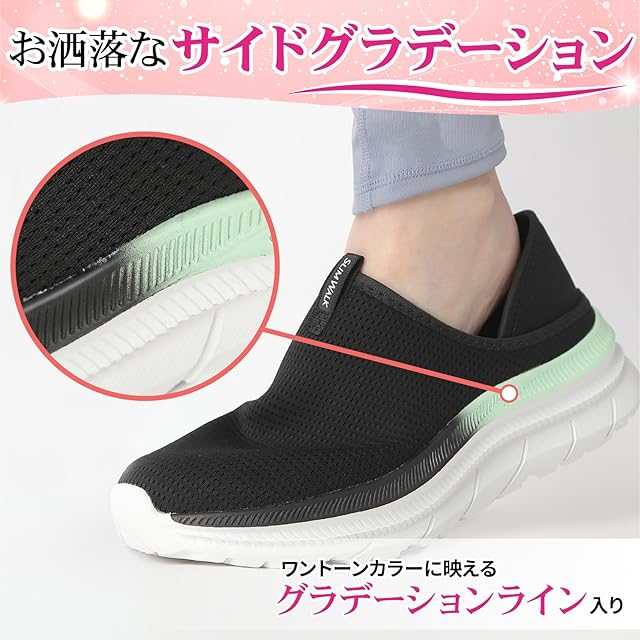 [スリムウォーク] かかとが踏める2Wayサンダルスニーカー 幅広4E 美脚インソール搭載 撥水加工 軽量 抗菌防臭 (ピンク, 日本の靴のサイズ寸法, 大人, 数値, 4_e, 23.5 cm)