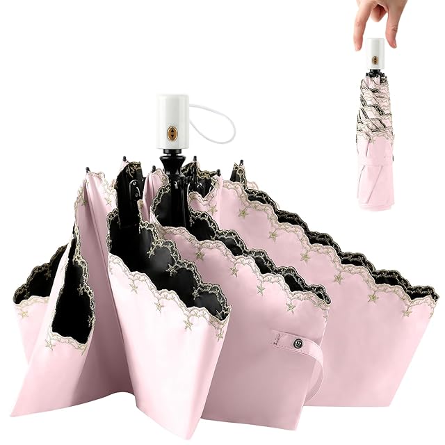 折りたたみ傘 丈夫 軽量 250g 日傘 uvカット 自動開閉 大きい 遮光遮熱 折り畳み傘 女性 晴雨兼用 レディース 紫外線カット 6本骨 耐風撥水 コンパクト 星柄刺繍 母の日プレゼント (ピンク)
