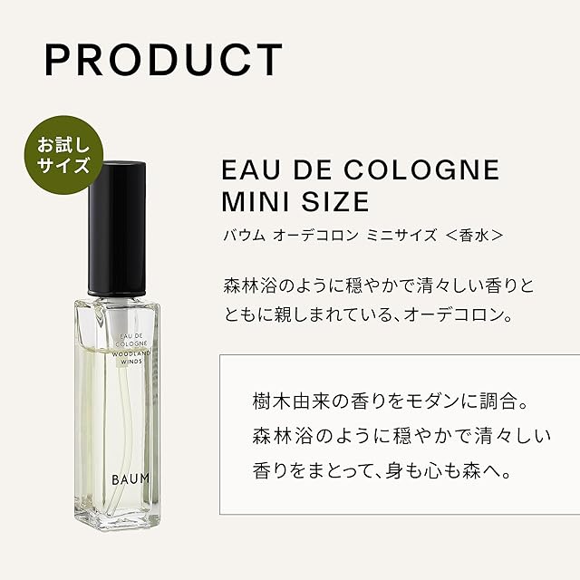 BAUM(バウム) オーデコロン 1 トライアルサイズ 10mL | オーデコロン | WOODLAND WINDS の香り | トライアル 香水 アロマティック リラックス 森林浴 ユニセックス ギフト プレゼント 誕生日 | オーガニック 樹木