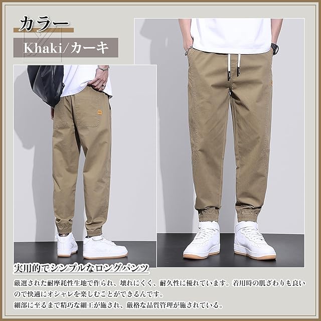 [Kayiyasu] チノパン メンズ ズボン パンツ ワークパンツ 大きいサイズ 裾リブ M~3XL ウエストゴム リラックス ボトムス 綿 黒 調整紐 アンクル丈 9分丈 ゆったり ずぼん かっこいい 無地 人気(M カーキ)