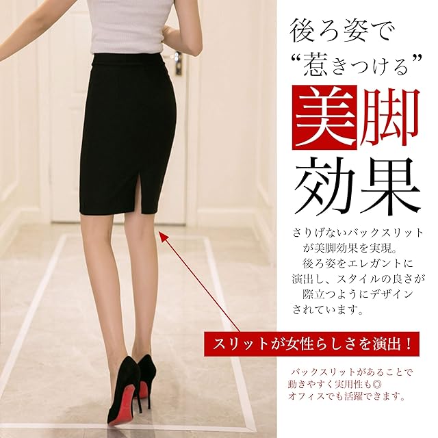 [ユニベイズ] ミニ〜ロング タイトスカート レディース 黒 ブラック スリット OL オフィス スカート ストレッチ (2XL, ブラック01)