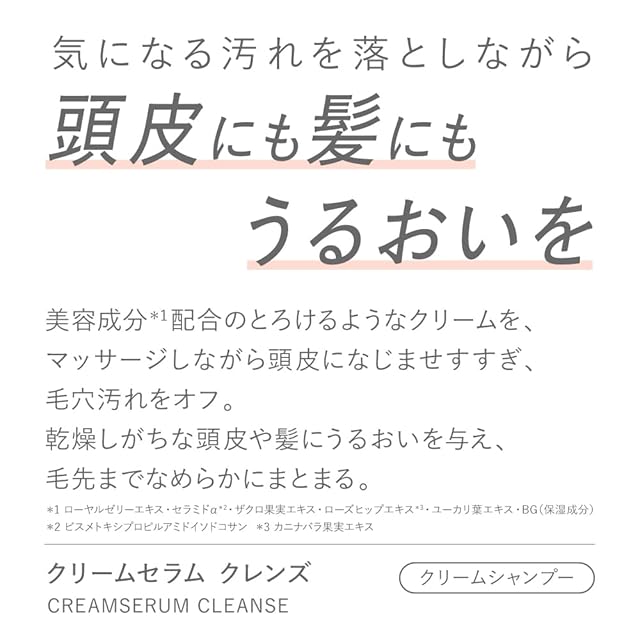 1本4役のクリームシャンプー。汚れを落としながら頭皮も髪もうるおい満たす。泡立たないタイプ。