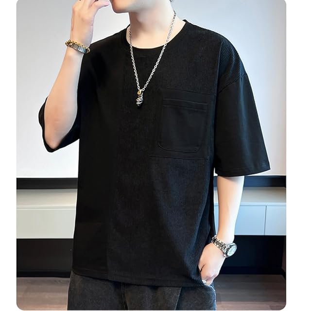[Aaronlive] tシャツ メンズ 半袖 五分袖 ゆったりTシャツ メンズ 夏服 柔らかい 肌触り 快適 大きいサイズ カジュアル ファッション メンズ tシャツblack XL