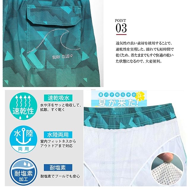 海、プール用の水着メンズだけではなく、旅行先でのリゾートショーツとしても使える。水や汗をサッと吸収して拡散、すぐ乾く!