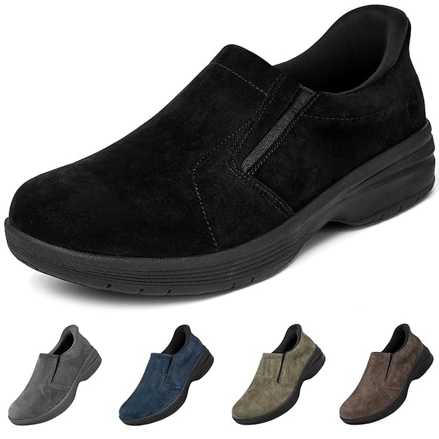 [MERPHINE] 【立ったまま履ける】本革 スエード スリッポン スニーカー メンズ スリップイン 手を使わずに履ける ウォーキングシューズ 紐なし カジュアル 履きやすい 夏 キャンプ 通勤 ドライビング ブラック