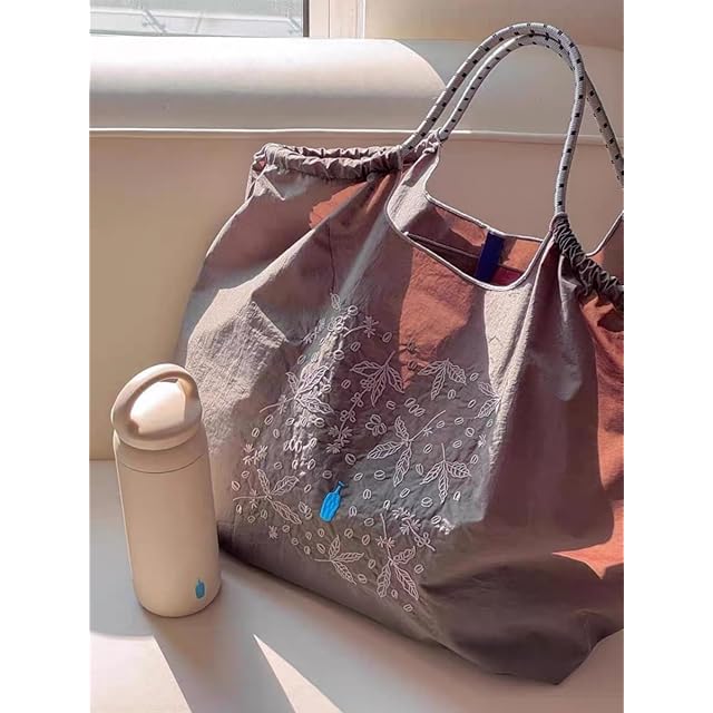 [BgYeah] ショルダーベルト 1 本無料 バッグに刺繍があり、エコバッグです。コンパクトで、バックパックとしても、買い物袋としても使えます。繰り返し使用でき、大容量で、軽量で、収納しやすいトートバッグで、キャリーオンバッグとしても使用できます (小さな青いボトル + 深灰色のバッグ) (小さな青いボトル + 深灰色のバッグ, M)