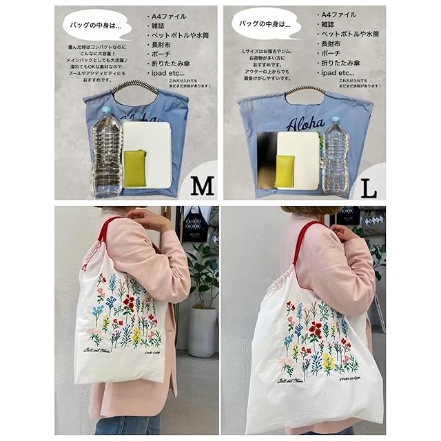 ショルダーストラップ付き 2way デザイン:このバッグはショルダーバッグとハンドバッグの 2way デザインで、厚手のコートを着ていても斜め掛けが可能で、とても便利です。本体サイズ:M:約 43cm×40cm×30cm、L:約 54cm×46cm×43cm(収納時:約 12cm×8cm)