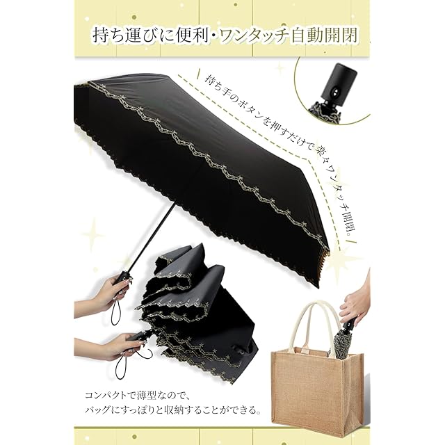 「自動開閉式&携帯便利」持ち手のボタンを押すだけで楽々ワンタッチ開くことが出来る。 両手に荷物を持っている時や車の乗降時、あるいは子供を抱いている時、また片手が塞がってしまう時、ワンタッチで簡単に開くことが出来る。折りたたみ式なので、バッグにすっぽりと収納することができる。持ち運びに大変便利です。