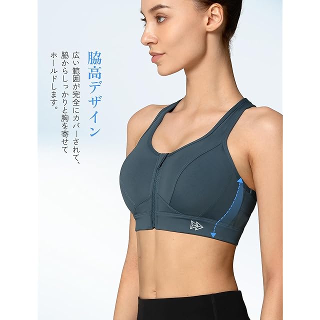 イベット 揺れない スポーツブラ 前開き フィットネス ランニング用ブラ 吸汗速乾 しっかりサポート レディース グレー S