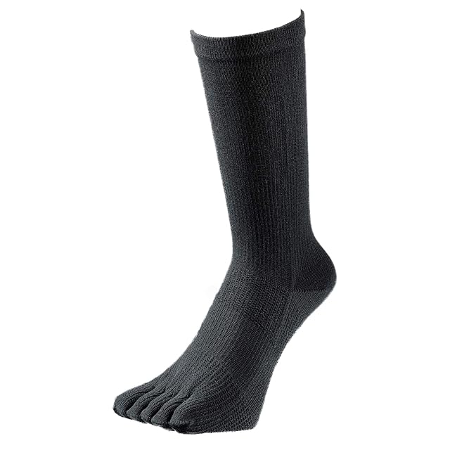 足首からふくらはぎ部分はゴムを段階的に緩めた構造の”テーパー形状”にて最適着圧を実現。疲れにくいを感じて頂ける5本指ソックスです。