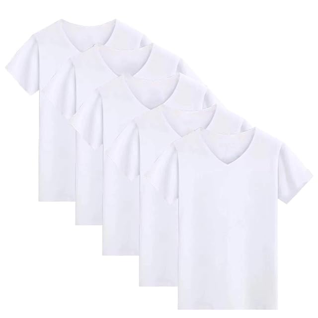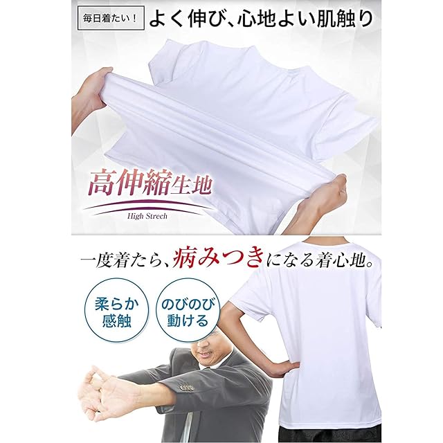 [NCFBAG] インナーシャツ メンズ Tシャツ 半袖 吸水速乾 5枚組 肌着 無地 Vネック 防菌防臭 クセになる肌触り 対応 服 (XXXXL(180cm~195cm), ホワイト)