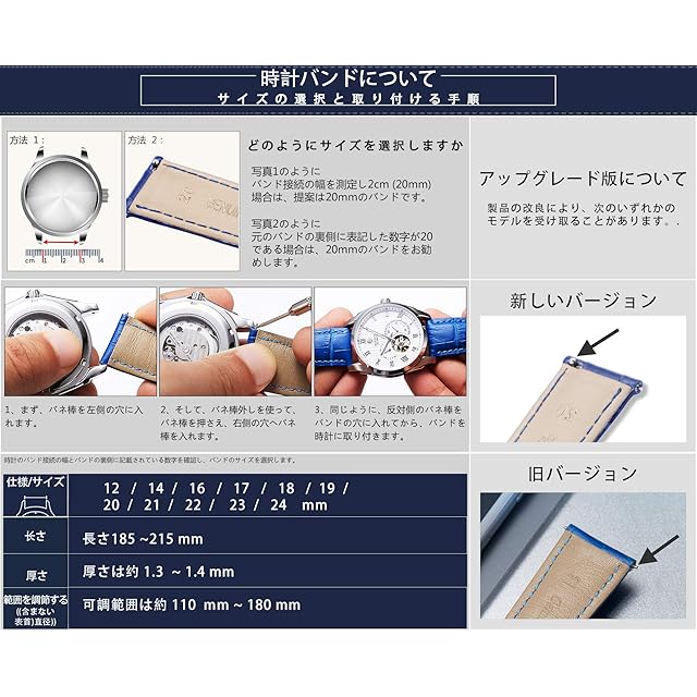 【含まれた物】本革時計バンド(1条)、調整工具(1個)。ご注意:もし時計バンドに対してご不明点や疑問がありますなら、是非弊店にお問い合わせてください。品質に関連する問題なら、弊店が責任を負います。