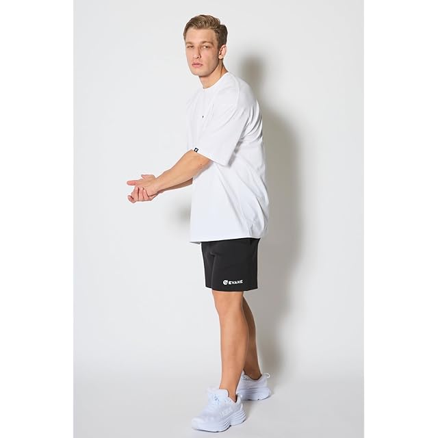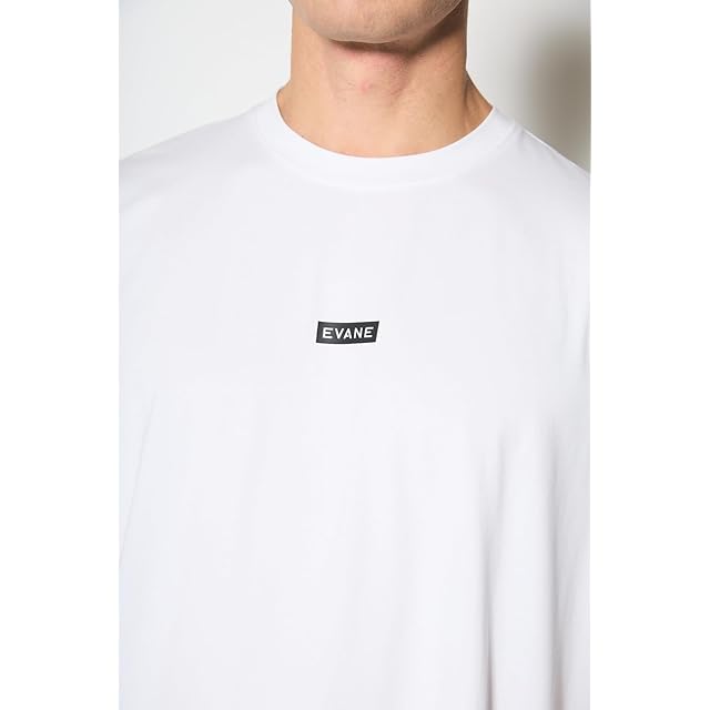 [EVANE] エバン オーバーサイズ コットン ストレッチ BOX LOGO Tシャツ (L, ホワイト)