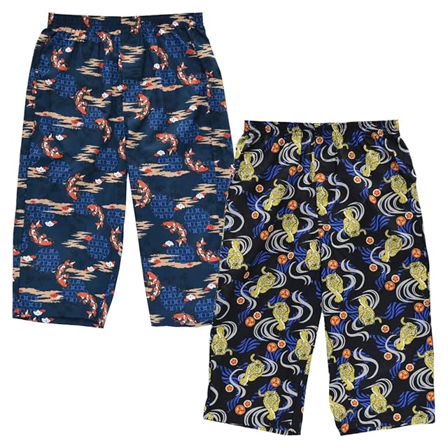 [OAR] メンズ 和柄 ステテコ 2枚セット 綿 100% 7分丈 前開き M L LL (LL)