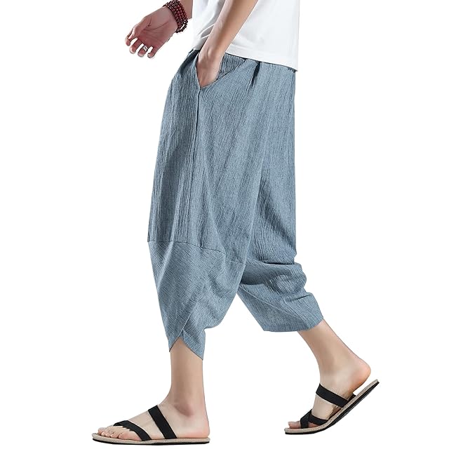 [HMT] サルエルパンツ メンズ 夏服 ズボン おしゃれ 大きいサイズ ゆったり 麻 接触冷感 ワイドパンツ メンズ 7分丈 薄手 春 夏 秋 に適用