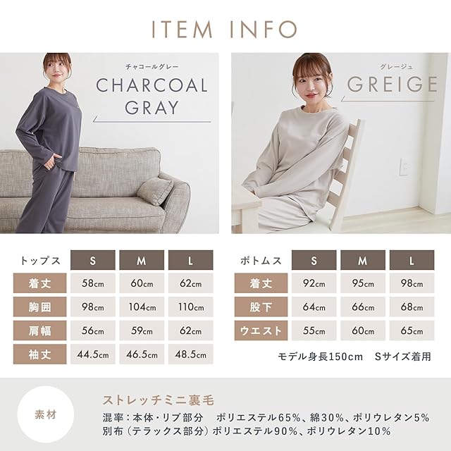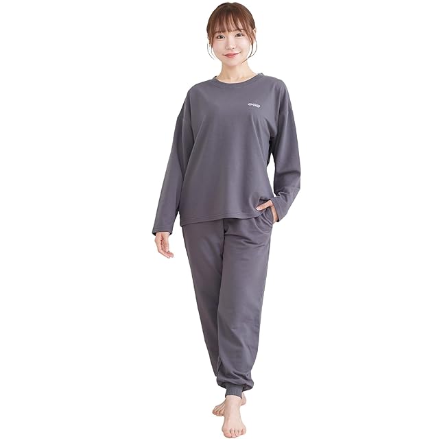 [ルアンナジェナ] 【 コラントッテ 】 パジャマ リラクシングウェア スウェット 上下セット メンズ レディース ルームウェア プレゼント ギフト (JP, アルファベット, M, チャコールグレー(レディースタイプ))