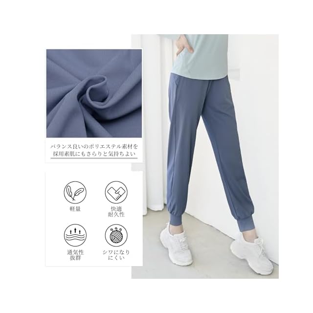 【素材感】ヨガパンツは厚すぎず薄すぎない素材感でオールシーズン使えます。さらっとした肌触りの良さと、伸縮性で履き心地の良さを兼ね揃えています。 【吸汗速乾】気軽に穿ける吸汗性あるトレーニングパンツなので、ダンスやヨガウェアなどを楽しむことができます。運動中の身体を快適でドライな状態を維持します。 【デザイン】動きやすくお洒落なデザインで、家でのリラックスウェアとしても、ちょっとそこまでのお出かけまでも多目的に活躍します。ジョガーパンツのサイズ感も細すぎず、太すぎず、程よいフィット感が楽しめます。 【仕様】両サイドにポケットがあり、小物の持ち運びに便利です。