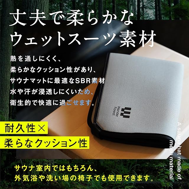 【汗が中まで浸透しない】座り心地が良く熱を通しにくいウェットスーツ素材(SBR)を使用しているので、不衛生な環境を気にせず快適にサウナを楽しんでいただけます。