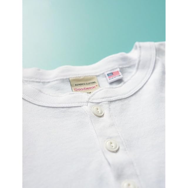 [グッドウェア] 半袖 ヘンリーネック Tシャツ レギュラー ヘビーウェイト 7.6オンス USAコットン メンズ 無地 (Medium, ホワイト)