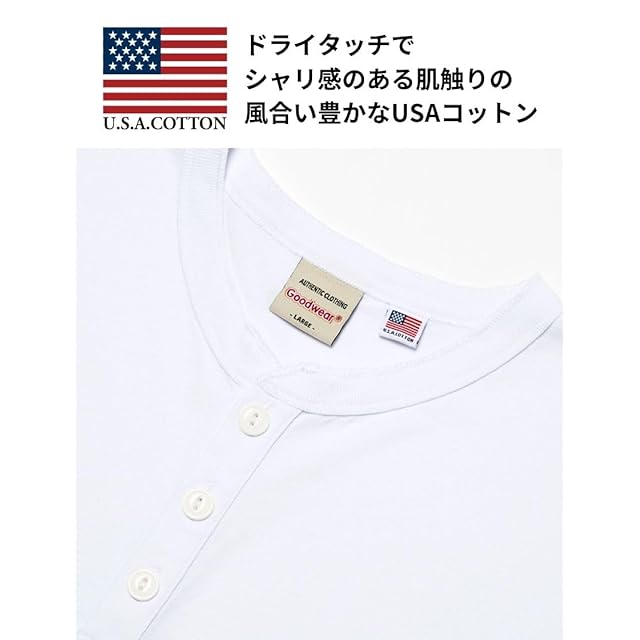 商品名:[グッドウェア] 半袖 ヘンリーネック Tシャツ レギュラー ヘビーウェイト 7.6オンス USAコットン メンズ 無地 (Medium, ホワイト)