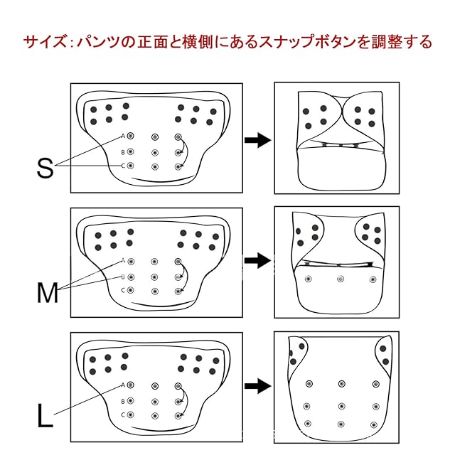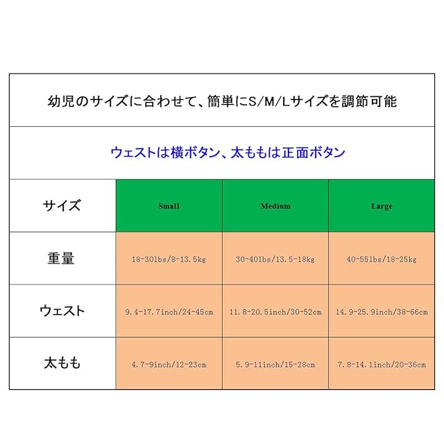 調整可能なスナップボタンが付いて、幼児のサイズに合わせることができ、脱ぎ着も楽になります。