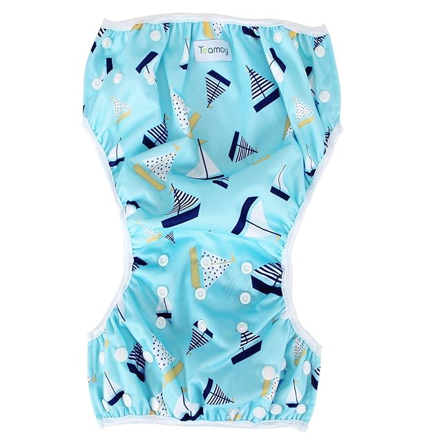 商品名:Teamoy 水遊びパンツ 2点セット 0-3歳 赤ちゃん用 ボタンでサイズ調整可能 防水外層 ポリエステルメッシュ内層 オムツカバー スイミング教室・公園・海水浴・プール(建設車両+ヨットブルー)