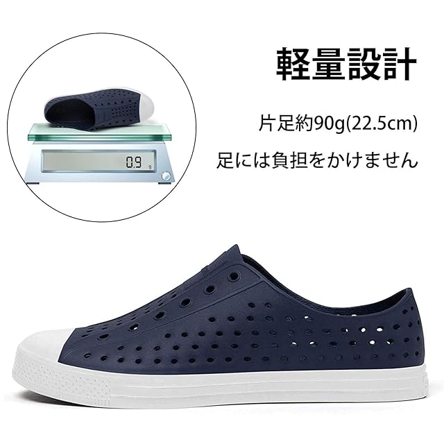 商品名:[SAGUARO] 超軽量 サンダル スリッポン 男女兼用 蒸れず スニーカー オフィス スポーツサンダル 通気 柔軟 (24.5cm,ネイビー)