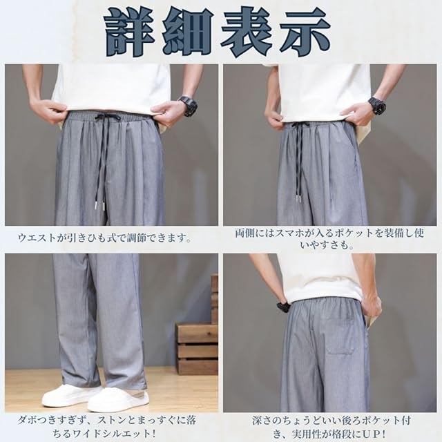 商品名:[GUTHONG] ズボン メンズ ワイドパンツ 春夏 サルエルパンツ テーパードパンツ カジュアル 大きいサイズ 無地 テーパードパンツ 人気 通気 ゆったり 快適 調整紐 ストレートパンツ メンズ ロングパンツ 春 夏 秋 gray 3XL