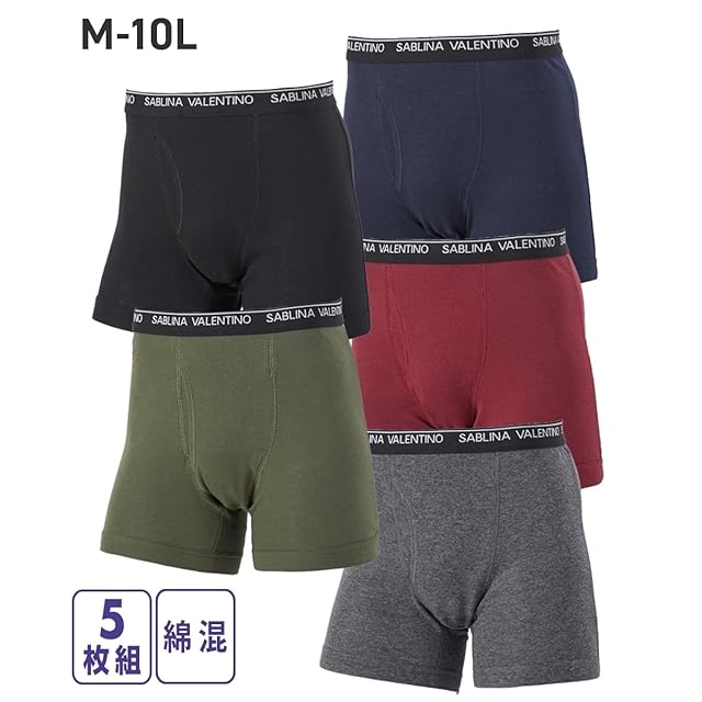 薄手の綿混素材で肌ざわりのよいボクサーパンツ。<br>締め付け感がなく、やさしいはき心地です。<br>使いやすい5色をセットにしました。<br>大きいサイズも展開してます(M/L/LL/3L/4L/5L/6L/8L/10Lサイズ)