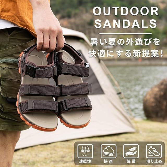 夏のアウトドアに最適な、軽量で快適なメンズサンダル。夏の暑い日でも、通気性の高いメッシュ素材を使用したスポーツサンダル。柔らかくて疲れにくい、長時間の使用に最適。EVAソールを使用し、柔軟性とクッション性を提供。足背と足首には4つの調整可能なマジックテープを搭載。シンプルで洗練されたデザインは、日常使いからアウトドア、旅行、登山まで、どんなシーンにもぴったり。黒、グレー、ミリタリーグリーン、ブラウンの4色展開で、どんな服装にも合わせやすい。父の日や誕生日のギフトとしても最適です。あなたの夏の冒険をサポートする一足。今すぐ手に入れて、爽快なアウトドアライフを楽しんでください!